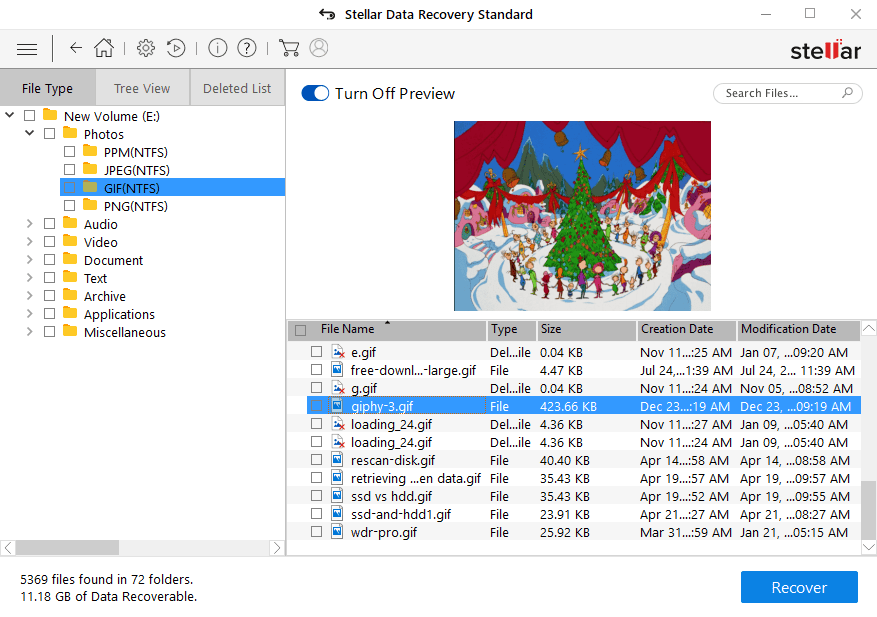 - After the scan is done, a list of the recovered files will appear, select them and preview the recoverable files before saving. And Select the files which you want to save and click ‘Recover.’