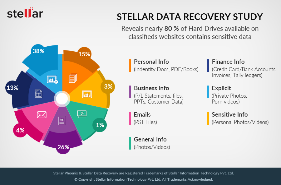 New Delhi, India, 21 December, 2017: A recent analysis done by Stellar Data Recovery, one of the world’s leading data recovery, data erasure and data migration solutions provider reveals that hard disk drives available on second-hand marketplace sites contain huge amount of confidential data. As part of the study, multiple hard disk drives were purchased from India’s leading online platform which facilitate buying and selling of second-hand products. For the sample collected, sensitive and high-risk data was uncovered in 100% of cases.